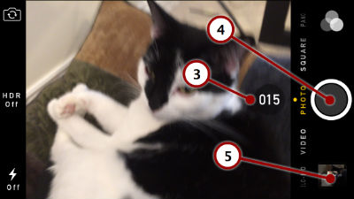 2. When you are ready, tap and hold the shutter button to take photos. Continue to hold.