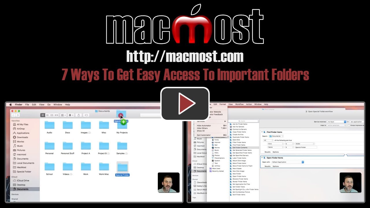 Let's say you have a special folder, a very special folder, that you need to access all the time. Maybe you're storing daily reports in there or hourly tasks. You just need to have very easy access to this folder. But you don't want to just put it on the desktop. You want to have it in your Documents folder in the proper place. Maybe it's even down a few levels in some subfolders. But you still want to have easy access to it. Well, there's a whole bunch of different ways that you can get quick, easy access to one or a couple of folders on your Mac.