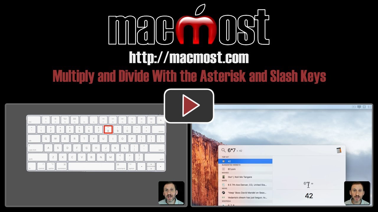 If you do any kind of calculating on your Mac or any computer you probably already know that to indicate multiplication you use the asterisk on your keyboard. Shift 8 on American keyboards. For division use the slash which is on the same key as the question mark. For addition and subtraction those symbols are actually on the keyboard. You have to use the Shift for addition but the dash is the same thing that you use for subtraction.